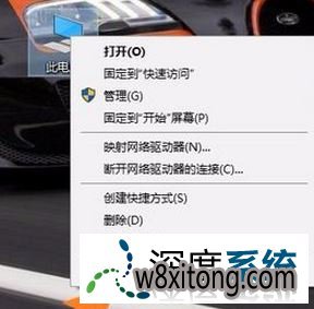 1、在桌面上的此电脑上打开鼠标右键,选中属性,如图: