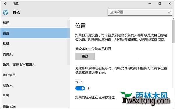 5、打开设置,选中下面的隐私,右侧会出现位置,其中就有定位服务的开启按钮,将其开启便可。