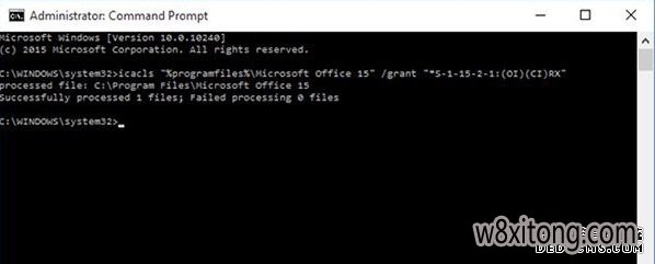 icacls "%programfiles%Microsoft office 15" /grant *s-1-15-2-1:(oi)(Ci)Rx