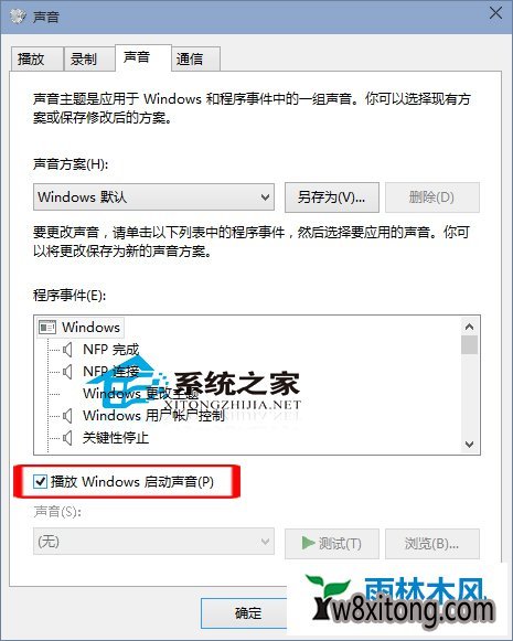 2、将播放windows启动声音选中,确定便可,如下图所示