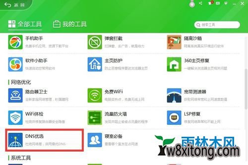 1、win8dns怎样修复?打开安全卫士的软件,打开更多功能的网络优化的dns优选。