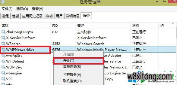 在任务管理器中停止wMpnetworksvc的服务就能解决win8安装商店应用时报错0x80070585的问题了,原来0x80070585错误是应用商店和wMpnetworksvc服务冲突引起的。