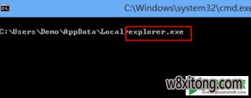 5、然后重启开启windows资源管理器,在命令提示符下输入 explorer.exe 回车即可;