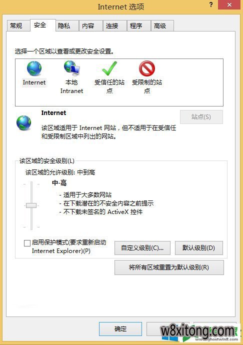 4、确定,返回“internet选项”取消“启用保护模式”勾选,确定退出。