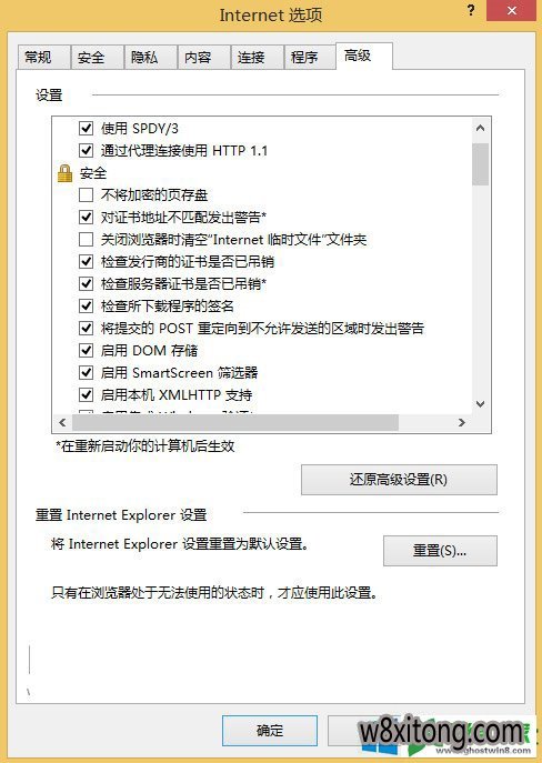 4、确定,重启浏览器生效,即可解决QQ空间的问题