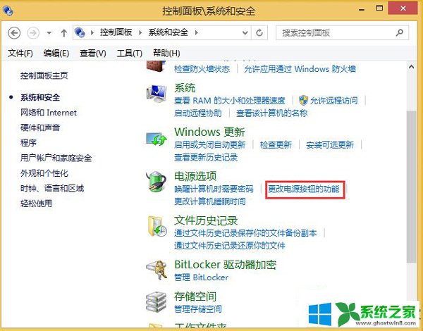 3、找到电源选项下方的“更改电源按钮功能”,并点击;