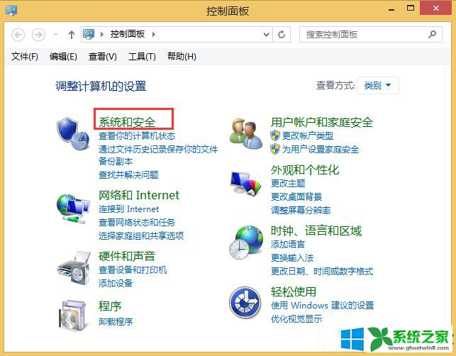 2、然后点击“系统和安全”(注意查看方式为类别);