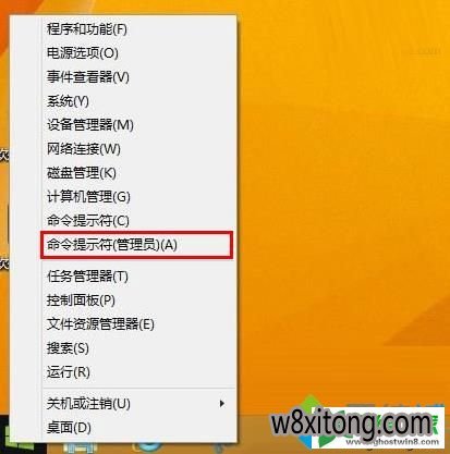 1、进入系统桌面后,鼠标右键点击左下角的windows图标,然后在弹出的菜单中选择“命令提示符(管理员)”,如下图所示: