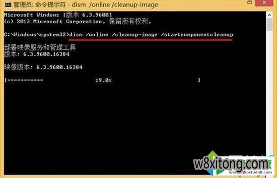 3、操作完成后,重启电脑。接着同样打开命令提示符(管理员),输入dism /online /cleanup-image /startcomponentcleanup,清除映像文件,如下图所示: