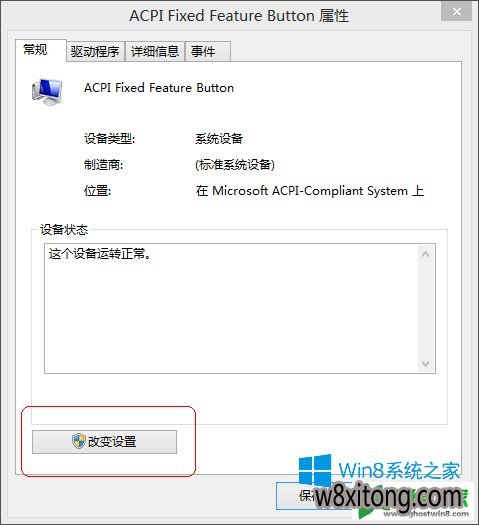 4、在属性面板里面选择“常规”,再选择“改变设置”;