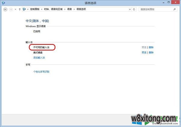 很多用户都喜欢在电脑上安装win8系统,但是有时候可能会遇到win8系统出现不可用输入法的情况。最近有不少用户到本站咨询win8系统出现不可用输入法的问题该怎么处理?虽然解决方法很简单,但是大部分用户不清楚win8系统出现不可用输入法到底要如何搞定?其实步骤很简单,只需要进入控制面板的语言选项,可以看到第一项是:不可用的输入法。本以为是输入法被删除或不小心卸载,但是在添加输入法中,输入法还在。就ok了。本教程就给大家演示一下win8系统出现不可用输入法详细的解决步骤: