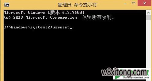 2.在打开的命令提示符窗口中输入wsreset并单击回车,这个时候需要等待电脑运行一段时间,等待运行完毕之后,退出命令提示符窗口,将电脑中开启的程序全部关闭掉,然后再次重启系统即可。