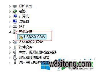 3、在右侧的选项中找到其他设备或者智能卡,一般是带有问好?或者感叹号的!的一个设备,如图所示的一种。