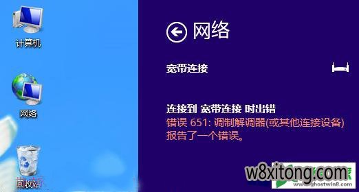 很多用户都喜欢在电脑上安装win8系统,但是有时候可能会遇到win8系统连接网络的时候遇到错误的情况。最近有不少用户到本站咨询win8系统连接网络的时候遇到错误的问题该怎么处理?虽然解决方法很简单,但是大部分用户不清楚win8系统连接网络的时候遇到错误到底要如何搞定?其实步骤很简单,只需要(1)ModEM信号灯常亮(指外线路信号灯,不同的AdsL ModEM指示灯名称也不同,常见的有Cd、dsL、AdsL、LinK、LinE等) (2)ModEM信号灯闪烁或不亮。就ok了。本教程就给大家演示一下win8系统连接网络的时候遇到错误详细的解决步骤: