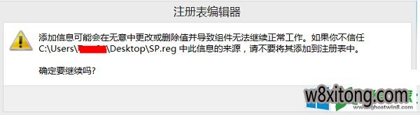 4、请您双击“sp.reg”,当系统提示您是否确认导入注册表时,请点击“是”。之后会有提示说明已经成功导入注册表。