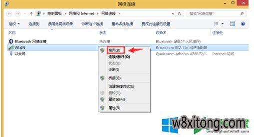 2、如果只是程序上出现小问题,可以尝试重启无线网卡,打开控制面板——网络和internet——网络连接,选择wlan,先禁用再启用无线网卡,多操作几次,再尝试开启wiFi共享精灵;