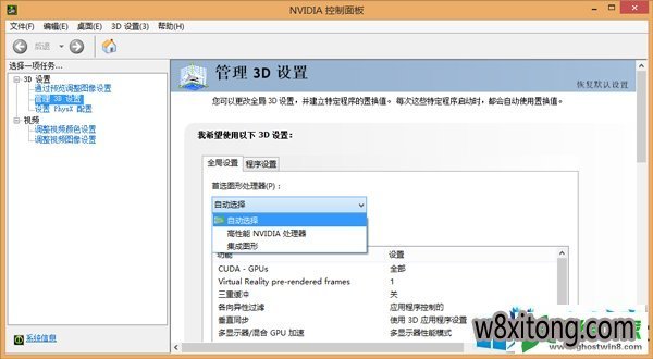 三、由于win8系统自动切换很可能会给计算机程序的支持带来影响,从而造成独显无法使用,可以采取手动指定软件使用独立显卡。