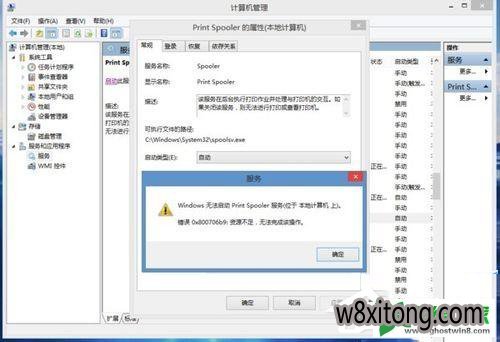 1、win8.1 更新后,打印机无法使用。print spooler 服务无法启动,弹出提示,错误0x800706b9资源不足,无法完成该操作。