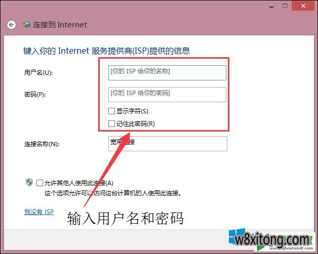 7、填写用户名和密码,然后点击连接,就可以上网了。