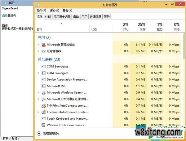 上面就是win8/win8.1系统硬盘占用100%的原因及解决方法介绍了,一切都是superFetch进程在作祟,用不到的话就关掉吧。