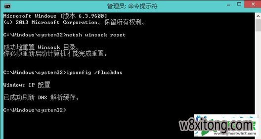 很多用户都喜欢在电脑上安装win8系统,但是有时候可能会遇到win8系统无线网络适配器显示未连接的情况。最近有不少用户到本站咨询win8系统无线网络适配器显示未连接的问题该怎么处理?虽然解决方法很简单,但是大部分用户不清楚win8系统无线网络适配器显示未连接到底要如何搞定?其实步骤很简单,只需要 1、按win+x,选择命令提示符(管理员),键入:netsh winsock reset,按回车键; 2、按win+x,选择命令提示符(管理员),键入:ipconfig /flushdns,按回车键;就ok了。本教程就给大家演示一下win8系统无线网络适配器显示未连接详细的解决步骤: