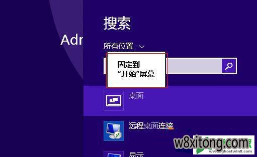 以上就是win8.1开始屏幕上没有桌面磁贴的恢复方法了,在搜索中找到桌面,然后把桌面重新固定到开始屏幕就可以解决问题了。