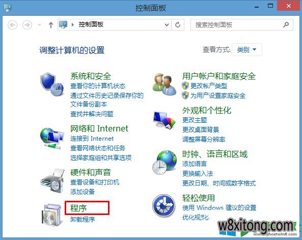 很多用户都喜欢在电脑上安装win8系统,但是有时候可能会遇到win8系统QQ里的链接打不开的情况。最近有不少用户到本站咨询win8系统QQ里的链接打不开的问题该怎么处理?虽然解决方法很简单,但是大部分用户不清楚win8系统QQ里的链接打不开到底要如何搞定?其实步骤很简单,只需要1、按下win+x,然后打开控制面板; 2、在控制面板中点击”程序“选项(控制面板查看类型要设置为类别);就ok了。本教程就给大家演示一下win8系统QQ里的链接打不开详细的解决步骤: