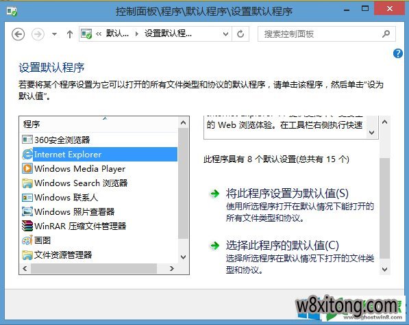 4、点击【internet Explorer】→【选择此程序的默认值】;