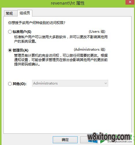 3、选中你的用户名,点击属性按钮。在弹出窗口,选择“组成员”页面,如下图:
