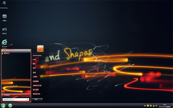 光是一种以电磁波形式存在的物质。电磁波的波长范围很宽,包含了无线电波、红外线、可见光、紫外线、X射线、宇宙射线等。其中,波长为380nm~780nm的电磁波能够引起人眼的视觉反应,因而称为可见光。光是可逆的。 今天为大家带来的是一款非常简洁的发光的线条win7主题下载,在这款主题中就是光与影的搭配所组成的效果.在一片黑色的氛围中,光影效果就是这样的明亮,图案也非常的精美.喜欢这精美的效果就赶紧下载到桌面吧