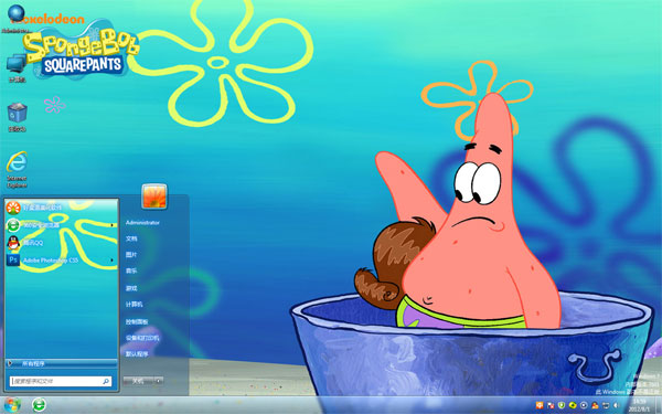 派大星洗澡win7可爱主题是小编推荐给大家的一款精美动漫主题。在这款海绵宝宝电脑主题中最不喜欢洗澡的派大星居然站在桶里面洗澡,这个可是难得一见的,大家快来收藏这款可爱的电脑主题吧!派大星,海绵宝宝的朋友,住在隔壁的插着天线的大石头底下。好吃懒做而且无脑,经常一事无成。又称“粉红大胖呆”,没有鼻子,认不得自己的父母,最喜欢看电视,是一个爱电视的海星,不喜欢洗澡,腋下都是毛,从来不刷牙也不剪指甲。喜欢看海绵宝宝的朋友们,这款派大星主题希望你们会喜欢~