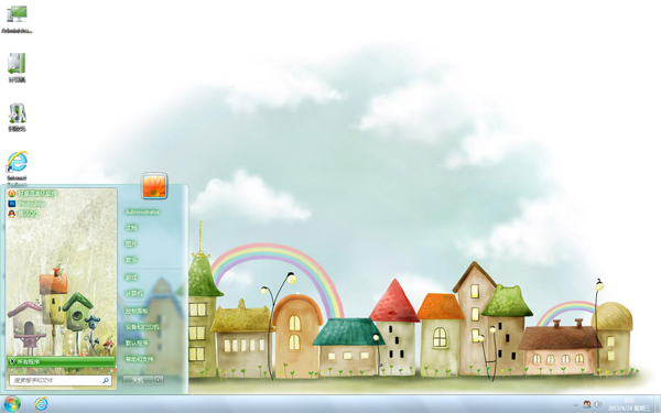 手绘小镇Win8桌面主题是小编今天要给大家推荐的一款精美的电脑主题,看到这款主题的第一感觉应该是比较唯美吧,桌面上的景色十分清新美丽。大家在里面可以看到房子,白云还有美丽的.....
